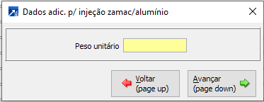 ![]() 08-Injeção zamac/alumínio: Na manutenção da formulação deste grupo, o SIGER® irá abrir ao final da manutenção uma janela possibilitando ao usuário informar dados para injeção zamac/alumínio.