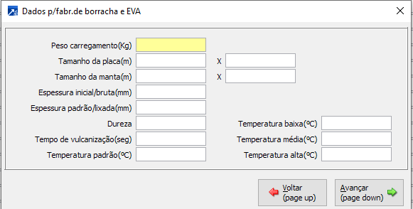 ![]() 09-Fabr. Borracha/EVA: Na manutenção da formulação deste grupo, o SIGER® irá abrir ao final da manutenção uma janela possibilitando ao usuário informar dados para fabricação de borracha e EVA.