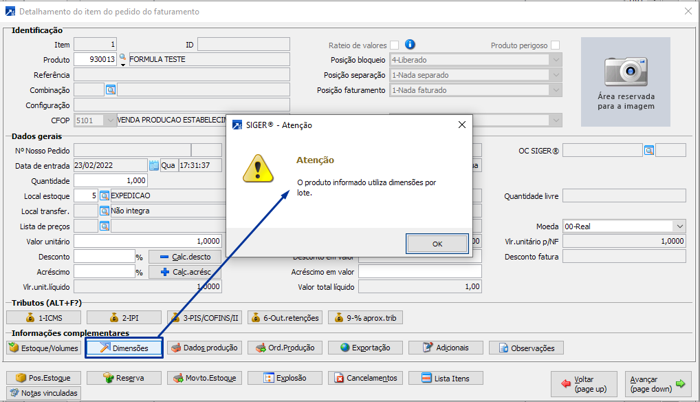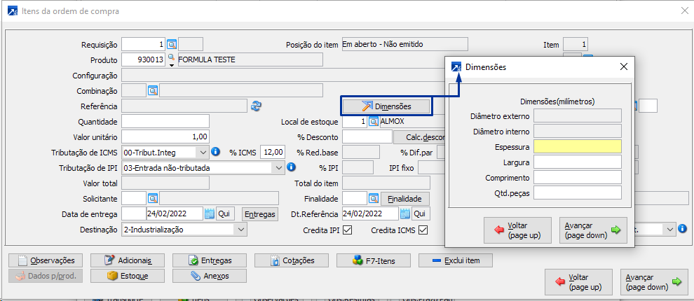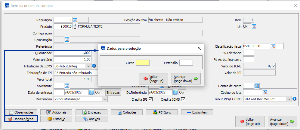 1-Sim: Irá permitir que seja feita a manutenção dos insumos da OP no retorno do serviço externo.