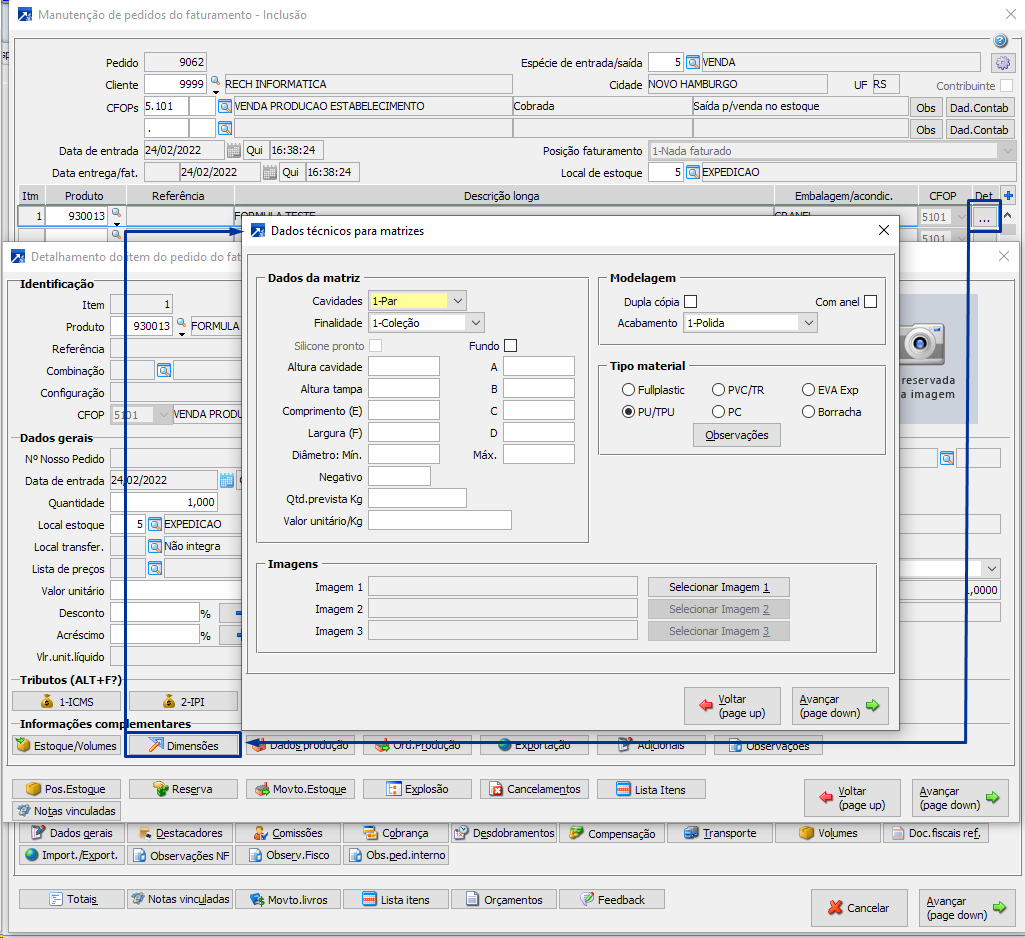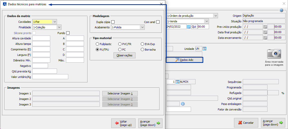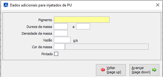 01-Injeção PU: Na manutenção das formulações deste grupo de produtos, o SIGER® irá abrir ao final da manutenção uma janela possibilitando ao usuário informar dados de injetados de PU.