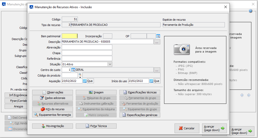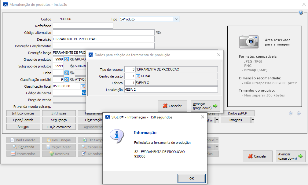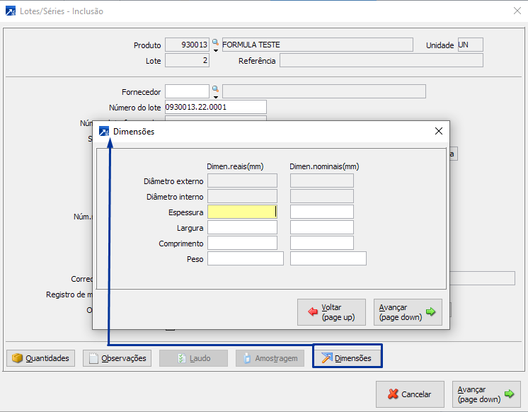 ![]() 15-Palmilhas: Na manutenção da formulação deste grupo, o SIGER® irá abrir ao final da manutenção uma janela possibilitando ao usuário informar dados da palmilha.