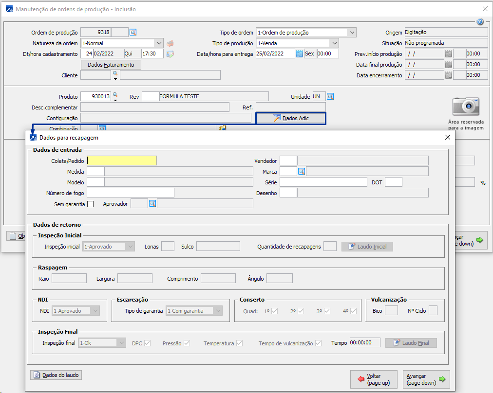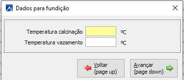 ![]() 04-Dad. de fundição: Na manutenção da formulação deste grupo, o SIGER® irá abrir ao final da manutenção uma janela possibilitando ao usuário informar dados para fundição.