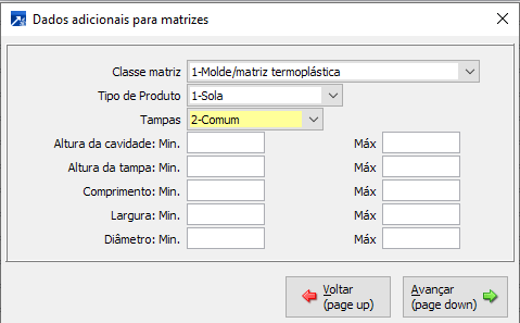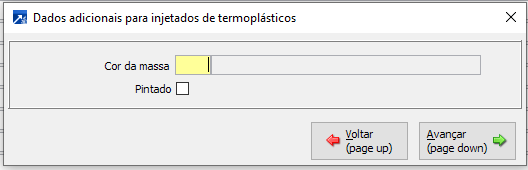 ![]() 06-Injeção termoplástico: Na manutenção da formulação deste grupo, o SIGER® irá abrir ao final da manutenção uma janela possibilitando ao usuário informar dados para injetados de termoplásticos.