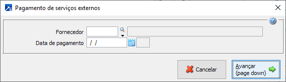 Código do fornecedor do movimento de retorno do serviço externo, o qual está pendente de cobrança. Tecle F8 para exibir a pesquisa de fornecedores.