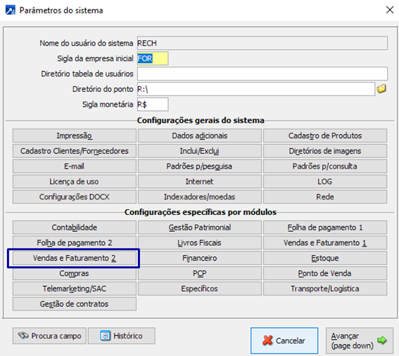 Vamos acessar o menu 1.1-P e o botão <Vendas e Faturamento 2>
