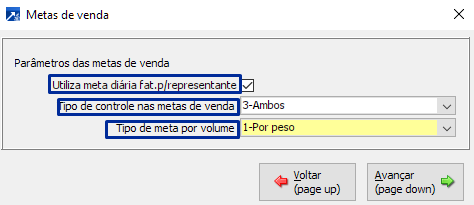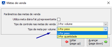 2-Por volume: Controlará meta apenas por volume de vendas (peso ou quantidade)