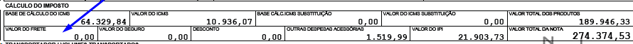 Valor de frete collect: o frete aqui inserido será somado no valor total da nota de Nacionalização e será destacado no campo "Frete" da nota.