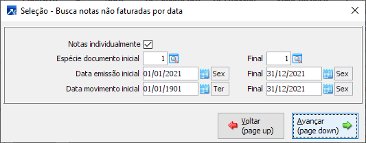 Lista de notas a faturar. As notas devem estar já cadastradas no SIGER® através do menu FIN 2.1-I ou de integrações.