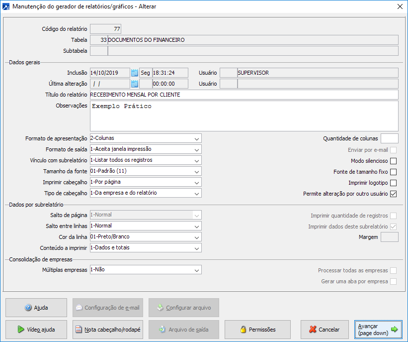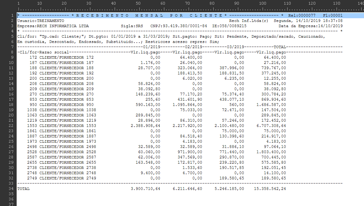 Recebido Mensal por Cliente - Cross Tab