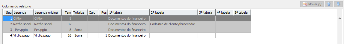 - período de pagamento como coluna