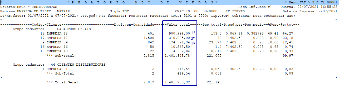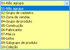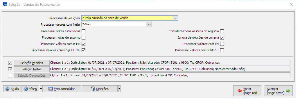 Esta é a mesma seleção padrão que é listada em vários relatórios do módulo de vendas e faturamento do SIGER®.