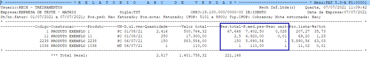 2-Peso: Poderá listar também os dados referentes aos pesos. É muito útil quando a unidade de venda de um produto, por exemplo, é peça porém a empresa quer fazer uma análise em "kilos" de quantas peças foram vendidas.