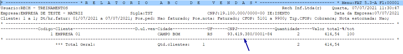 4-CNPJ: Lista uma coluna adicional com o CNPJ do cliente.
