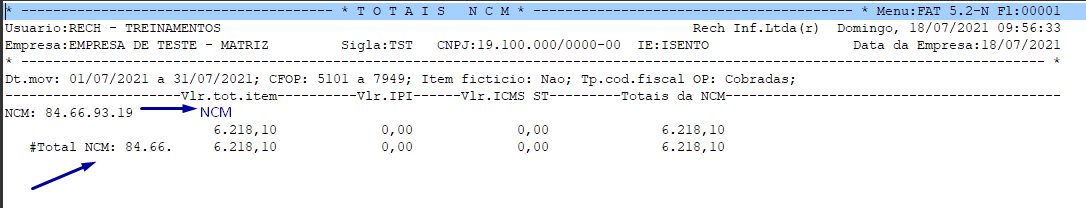 No SIGER® é possível emitir um relatório de vendas por NCM (Nomenclatura Comum do Mercosul).