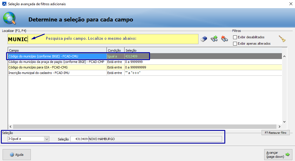 Para fins de exemplo, vamos filtrar somente clientes do grupo 1 e que sejam do município de Novo Hamburgo.