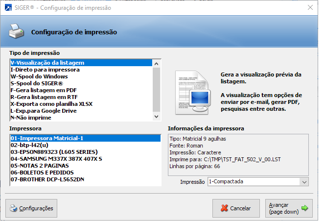 A primeira tela a ser apresentada é a de parâmetros/opções do relatório.