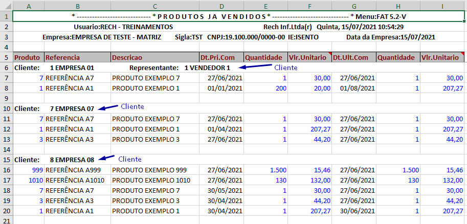 Este relatório é bastante útil pois lista os produtos que já foram comercializados junto ao cliente.