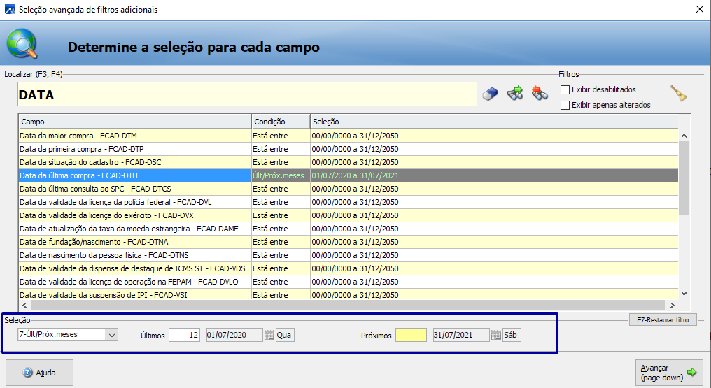 Um filtro relevante a ser utilizado para este relatório é o de "Data da última compra".