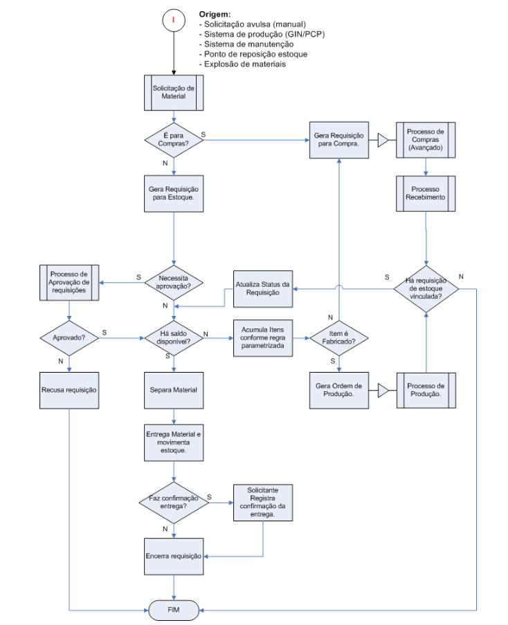 Também seria possível gerar requisições de estoque a partir do módulo de produção (Gestão Industrial), a partir da programação gerada para as ordens de produção.