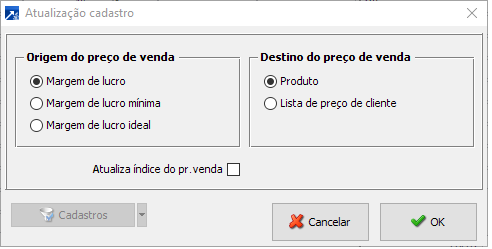Valor original para cálculo do custo base do formação do preço de venda. Irá respeitar o campo "Origem custo base".