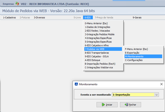 1- Importação: Importa os pedidos enviados do aplicativo PMO.