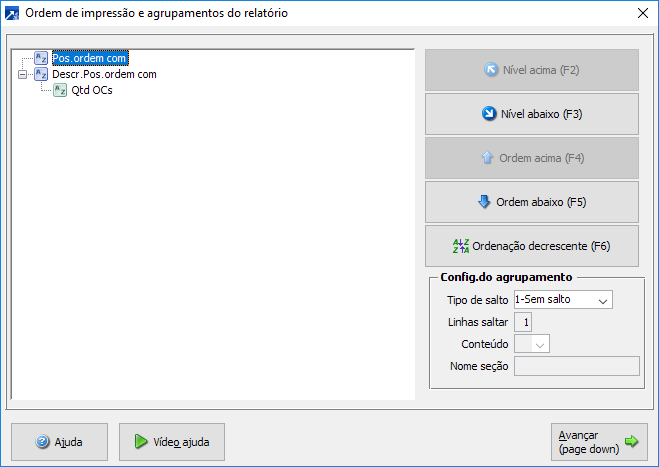 - deve ter apenas um nível de agrupamento