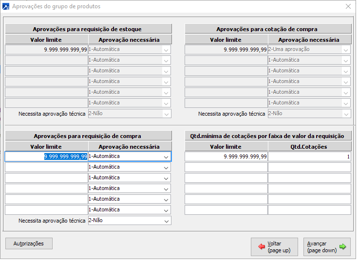 Habilita apenas quando possui o adicional de compras avançado e a empresa do compras estiver parametrizado para respeitar critérios do grupo/subgrupo.