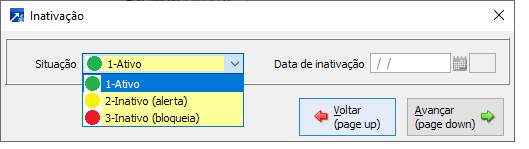 O botão de inativação permite alterar uma fábrica para status de 1-Ativo / 2-Inativo (alerta) / 3-Inativo(bloqueia).