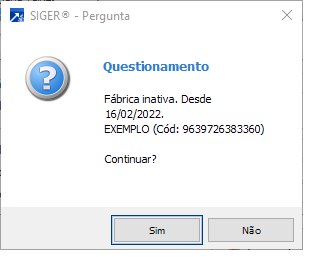 Na situação 2-Inativo(alerta) a fábrica pode ser utilizada, porém irá ser exibido um alerta indicando a inatividade da mesma.