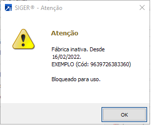 Na situação 3-Inativo(bloqueia) a fábrica não pode ser utilizada, uma mensagem irá ser exibida e impedirá que seja feito programação .