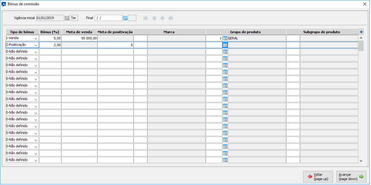 Onde são configuradas as bonificações computadas na apuração de comissões - positivação e metas e vendas. + Saiba mais