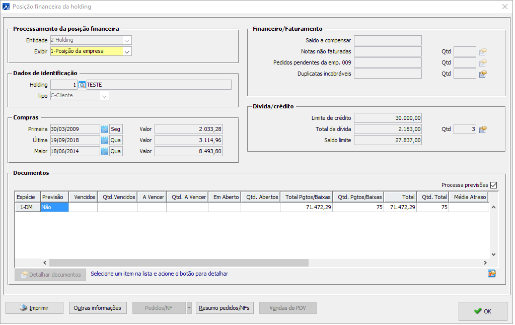 Exibe resumo das operações dos cadastros desta holding. Pode ser vista individualmente por sigla, ou consolidando.