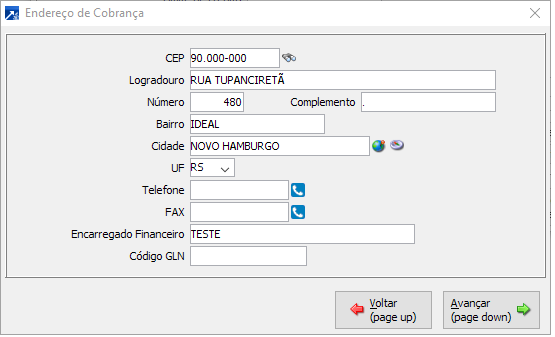 Endereço centralizador de cobranças. Habilita apenas quando o campo "Endereço de cobrança centralizado" está marcado.