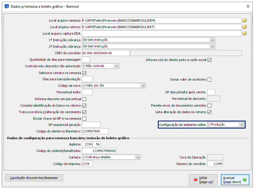 Nele são configurados dados específicos para a emissão do boleto de cobrança. Para habilitar o botão, o local de cobrança precisa emitir boleto gráfico.