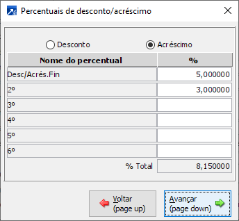 Campo para exibir o total de descontos e acréscimos configurados no botão <%Desc/acrés>.