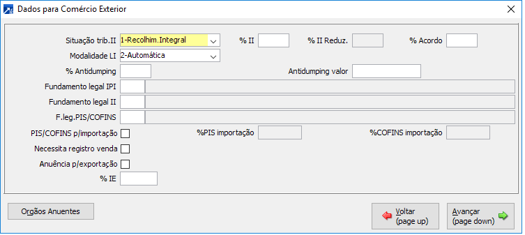 Outras configurações de tributação para o Comércio Exterior.