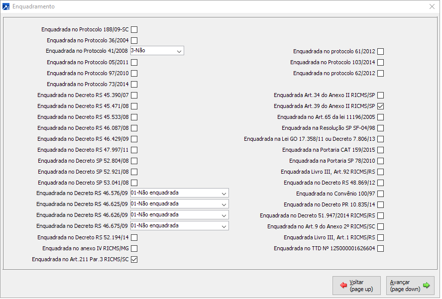 Enquadramento em legislações específicas.