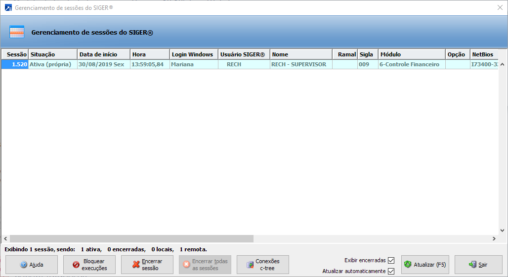 Data do último backup gerado pelo SIGER®. + Saiba mais