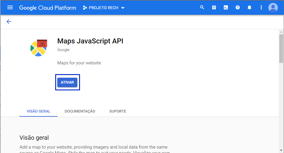 4. Ativar as três APIs necessárias clicando no botão "Ativar" na página de cada uma delas