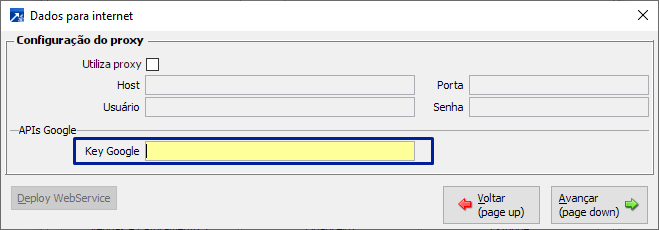 Acessar o SIGER® em qualquer módulo. No menu 1.1-P, botão Internet, campo "Key Google" colar a chave que deve estar na área de transferência (CTRL + V)