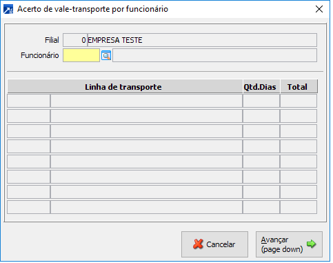 Se necessário fazer algum ajuste no vale transporte de um funcionário MENU 5.2-V ou MENU 2.5-M.