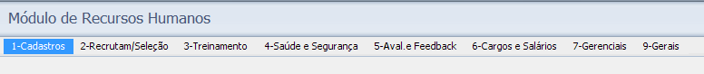 os menus que compreendem o RHU. O 1,7 e 9 são genéricos, ou seja, um único para todas as empresas/siglas e os demais menus são específicos ao módulo de RHU.