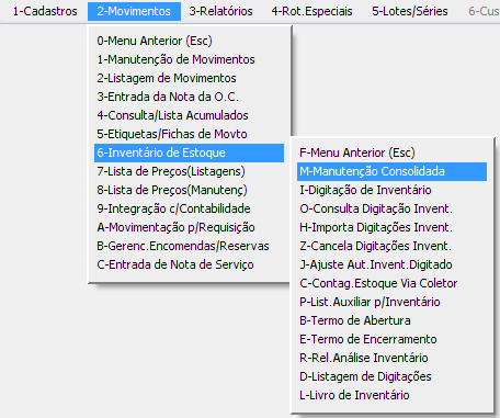 Ao acessar o menu EST 2.6-M sistema irá abrir a seleção padrão de digitações de inventário.
