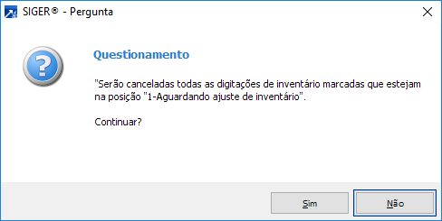 Ao clicar em "Sim" será feito o cancelamento da digitação de inventário.