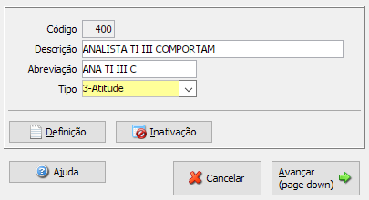 No botão <Definição> deve ser colocado uma breve descrição do que representa a competência cadastrada.