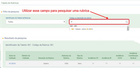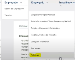 Dentro do portal do eSocial, realizar a consulta das rubricas. Desta forma, faremos as conferências das incidências.