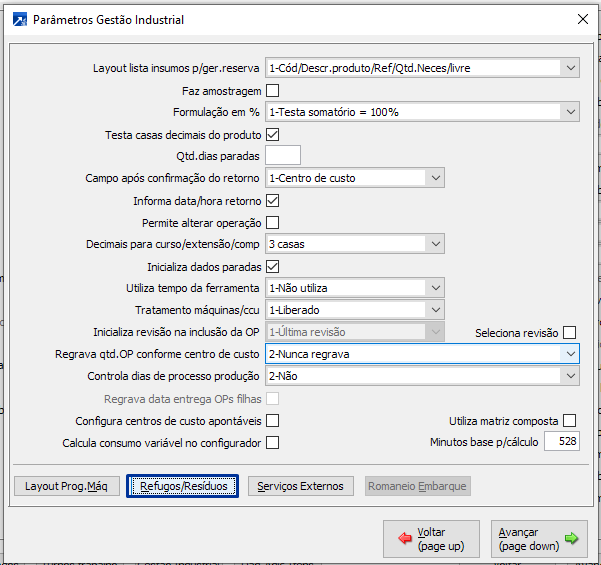 Permite gerar movimentos de refugos nos apontamentos da produção.
