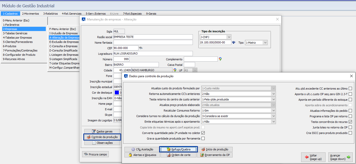 Acessar o menu 1.2-A-Alteração de empresas, no botão <Controle da produção>:
