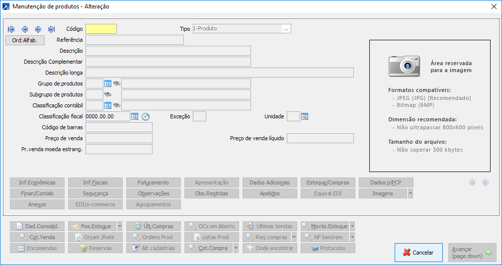 Módulo/Menu: Controle de Estoques, 1.4, Tabela 03-Grupos de produtos.