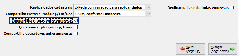 OBSERVAÇÃO: Quando a empresa tem matriz e filiais, será necessário vincular o mesmo operador para todas as SIGLAS. Para vincular o mesmo operação para todas as SIGLAS, precisa marcar a check box no menu 1.1-P, botão <Dados adicionais>, botão <Compartilhamento>, campo "Compartilha operadores entre empresas".